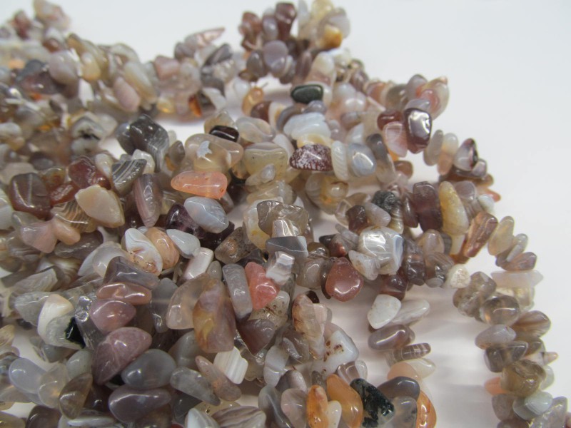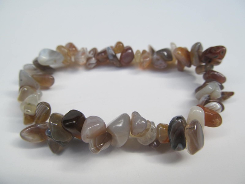 Náramek z tromlovaných kousků šedého proužkovaného achátu z Botswany. Universální velikost na gumičce ca.17 cm. Cena je za kus nebo cenově výhodnější velkoobchodní balení 10 ks těchto náramků.