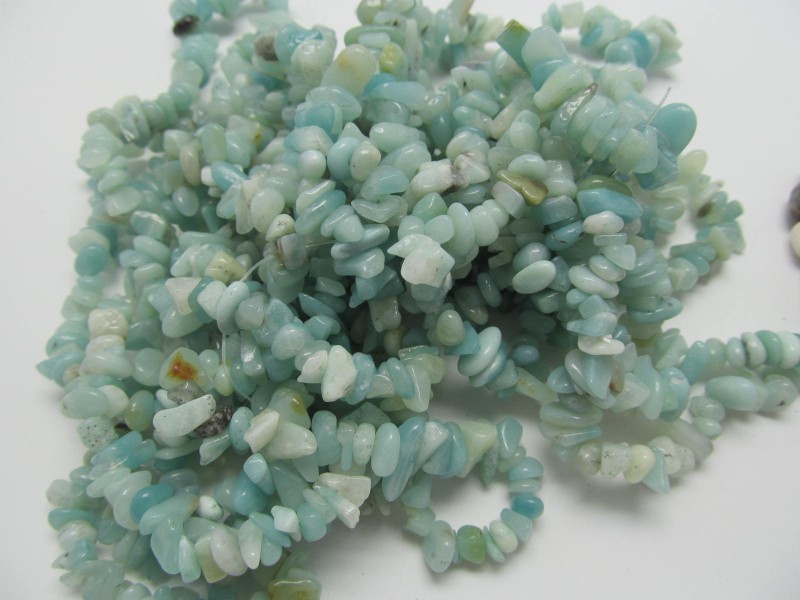 Náramek z tromlovaných kousků mosambického amazonitu. Universální velikost na gumičce ca.17 cm. Cena je za kus nebo cenově výhodnější velkoobchodní balení 10 ks těchto náramků