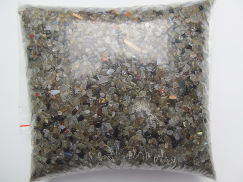 Tumbled labradorite from Madagascar size ca.3 mm. Price is for 1 kg.
