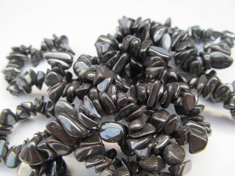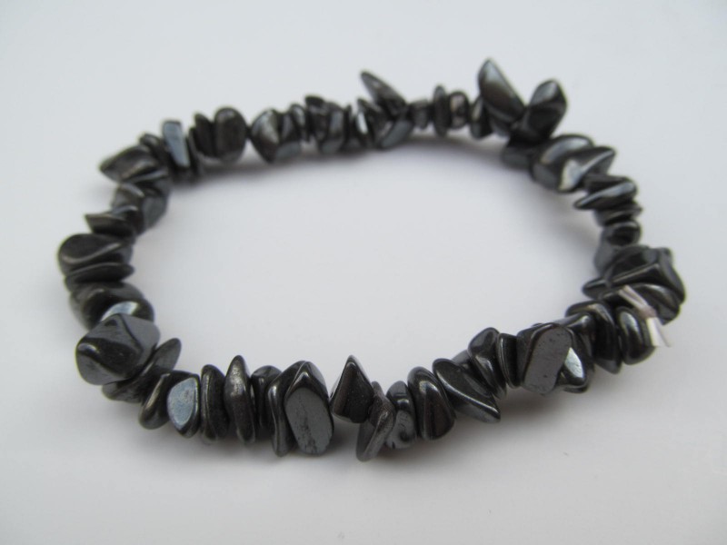 Náramek z tromlovaných kousků hematitu. Universální velikost na gumičce ca.17 cm. Cena je za kus nebo cenově výhodnější velkoobchodní balení 10 ks těchto náramků.