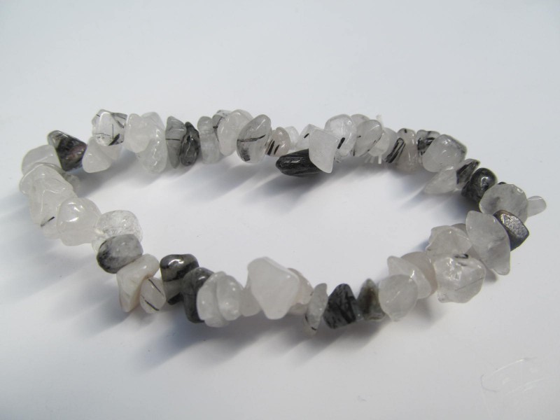 Náramek z tromlovaných kousků křišťálu s turmalínem. Universální velikost na gumičce ca.17 cm. Cena je za kus nebo cenově výhodnější velkoobchodní balení 10 ks těchto náramků.