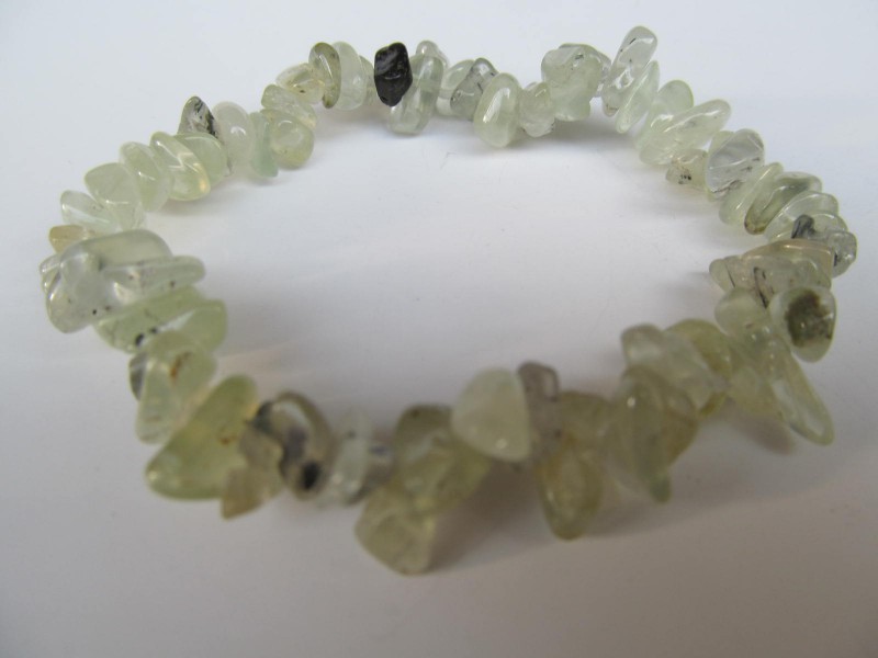 Náramek z tromlovaných kousků prehnitu. Universální velikost na gumičce ca.17 cm. Cena je za kus nebo cenově výhodnější velkoobchodní balení 10 ks těchto náramků.