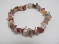 Náramek z tromlovaných kousků sagenitu - rutilu v křišťálu. Universální velikost na gumičce ca.17 cm. Cena je za kus nebo cenově výhodnější velkoobchodní balení 10 ks těchto náramků.