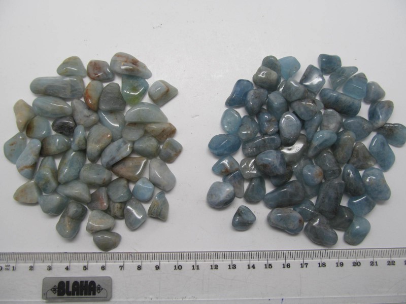 Tromlovaný pravý akvamarin kvality A nebo B z Afriky, Mosambiku. Cena je za 1 kg.