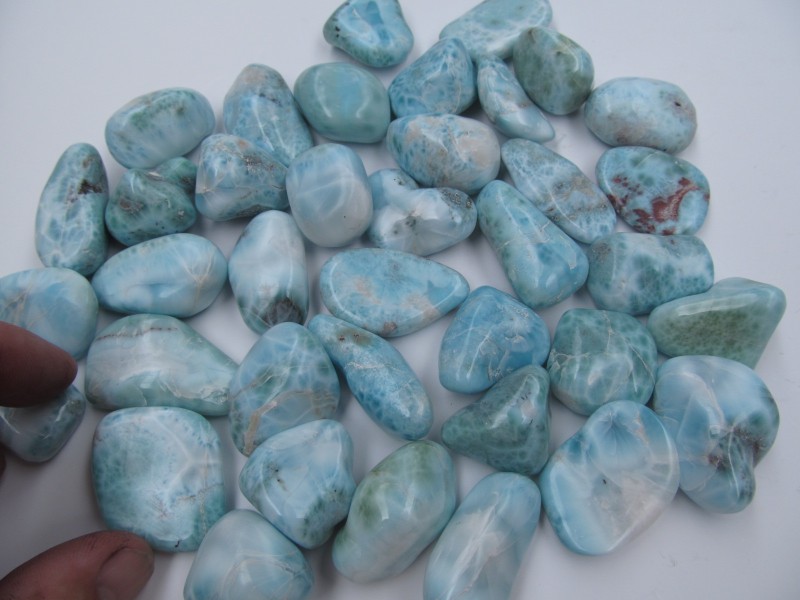 Tromlovaný pravý larimar v extra kvalitě z Dominikánské republiky. Velikost kamene je od 1 do 10 gramů. Cena je za kus. S/1 cm =1-2 gr.,M/1,5 cm =3-4 gr.,L/2 cm =5-8 gr.