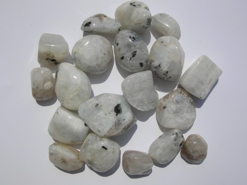 Tromlovaný měsíční kámen z Indie.Velikosti balené po 1 kg sáčcích B1= 1 cm/ kus a asi 850 kamínků, S= 1,5 cm/kus a asi 400 kamínků, L= 2 cm/kus a asi 150 kamínků, XL= 3 cm/kus a asi 50 kamínků.Cena za 1 kus velikosti XL-asi 3x3 cm .