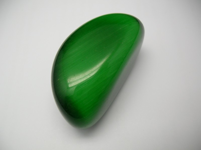 Tromlovaný ulexit - kočičí oko syntetický kámen, tvar měsíček pro dobré sny, barva zelená. Váha kamene asi 60 g., cena je za kus ale možno objednat i velké 5 kg balení za výhodnější cenu.