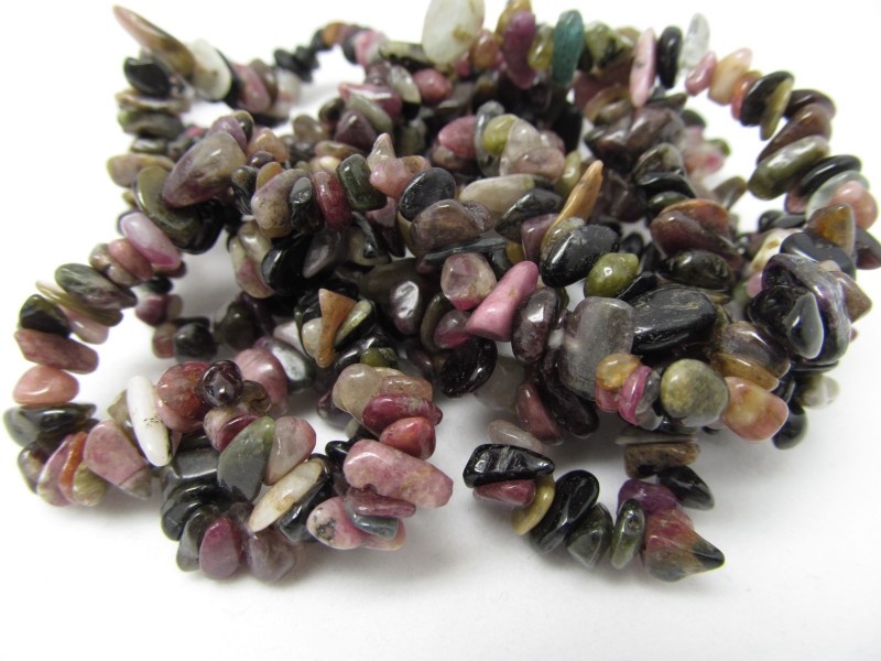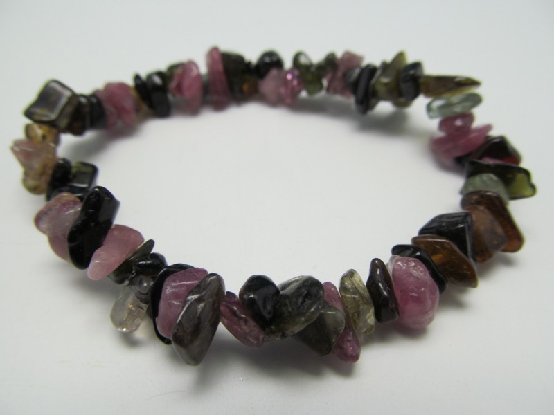 Náramek z tromlovaných kousků barevných turmalínu z Madagaskaru. Délka náramku na gumičce je 17 cm. Cena je za kus nebo cenově výhodnější velkoobchodní balení 10 ks těchto náramků.